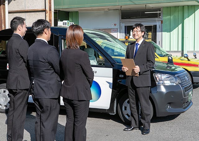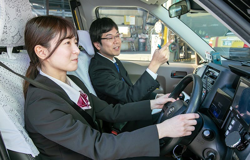実際に乗客を乗せる前に接遇、地理などの研修に加え、教官が添乗する実務研修がしっかり行われますので、タクシー乗務員の経験がない方も安心してご応募ください。